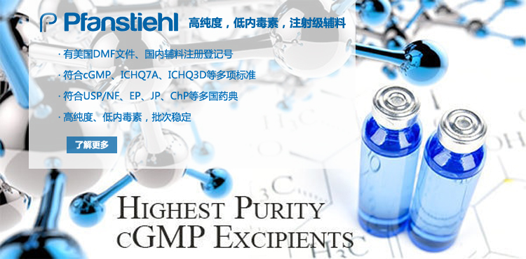 “熱烈祝賀Pfanstiehl的注射級甘氨酸Glycine(G-140)喜獲CDE登記號F20250000403, 這是Pfanstiehl產品獲得的第18個CDE登記號!”甘氨酸在醫藥輔料制劑中應用廣泛,, 可作為緩沖劑,增溶劑,穩定劑等,具有諸多優勢。Pfanstiehl秉承一貫高品質理念,為滿足全球生物制藥行業對于高品質甘氨酸的需求,隆重推出的注射級甘氨酸Glycine (G-140), 具有超高純度,超低內毒素,超低金屬殘留的特點,單獨檢測29種金屬離子,并且新增DNA,RNA,DNA酶,RNA酶和脂肪酶,亞硝酸鹽等多項質量指標的檢測,符合多國藥典規定(USP, EP, BP, JPE, ChP),可用于生物治療性藥物和疫苗的生產。產品信息:· 產品名稱:Glycine, High Purity, Low Endotoxin, Low Metals, USP, EP, BP, JPE, ChP (G-140)· 中文名稱:甘氨酸· 分子式:C2H5NO2· 分子量:75.07 g / mol· CAS號:56-40-6· 產品貨號:G-140產品特點: · 超高純度,超低內毒素,超低微生物含量,超低金屬雜質殘留· 質量指標新增DNA,RNA,DNA酶,RNA酶,脂肪酶和亞硝酸鹽檢測· 符合多國藥典:USP, EP, BP, JPE, ChP· 符合ICH Q3D標準· 符合GMP標準· 已獲DMF和CDE登記號 產品應用:· 緩沖劑· 穩定劑· 增溶劑如果您對Pfanstiehl注射級別Glycine G-140感興趣,歡迎聯系Pfanstiehl 中國區代理商北京西美杰科技有限公司獲得如下詳細的產品概況說明文件和測試樣品。Pfanstiehl Inc.最新產品系列如下,歡迎聯系北京西美杰科技有限公司獲取100g裝免費樣品。北京西美杰科技有限公司為Pfanstiehl中國代理,為客戶提供完善的技術支持與售后服務。歡迎撥打西美杰客服電話400-050-4006或者登陸網站www_xmjsci_com.yclfpo.pro了解更多信息。 更多>西美杰介紹